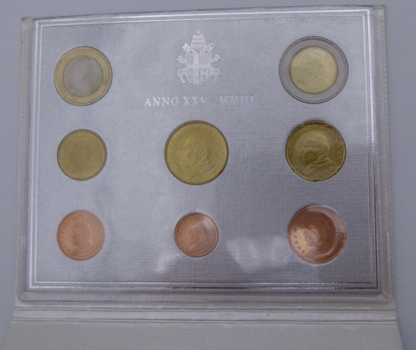 Offizieller Umlaufmünzensatz des Vatikans aus 2003 in St mit dem Bild von Papst Johannes Paul II. Auflage: 65.000 Stück in originaler Verpackung.